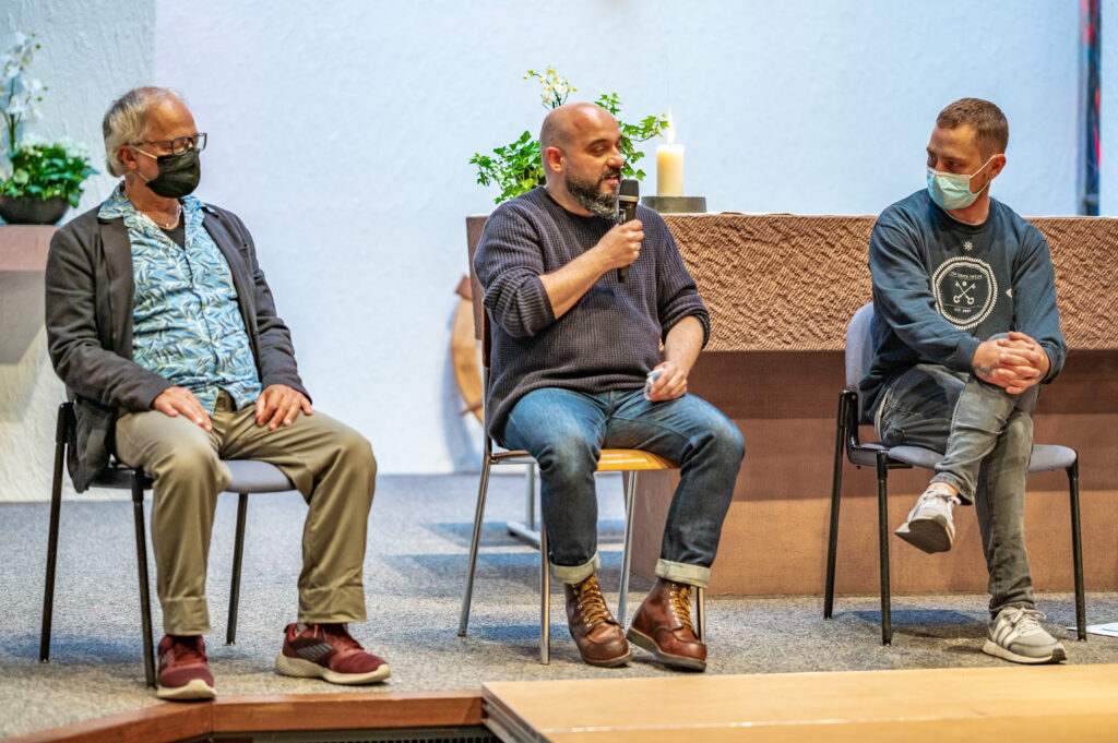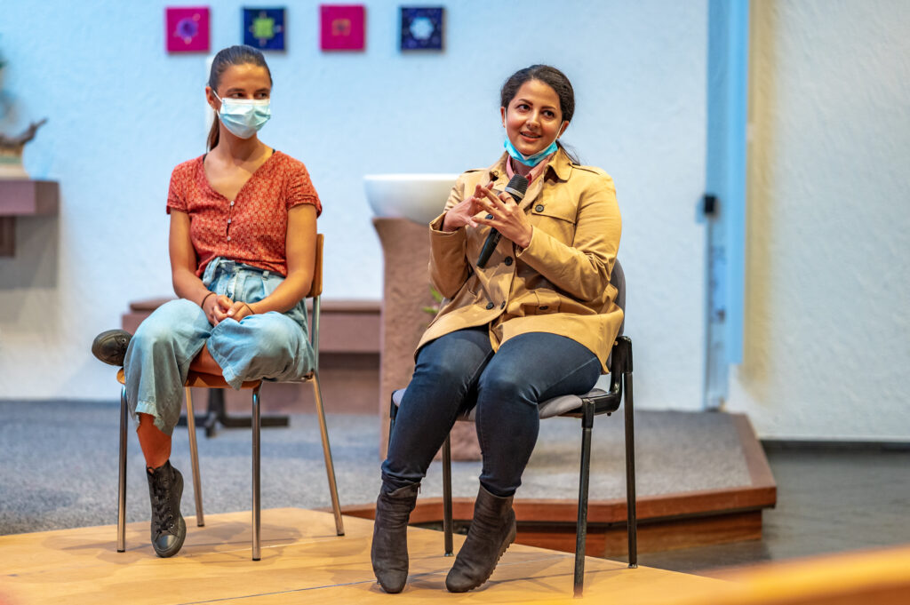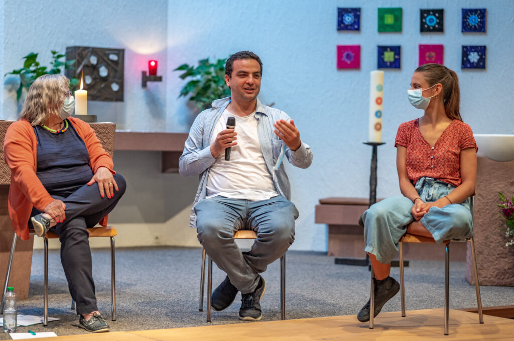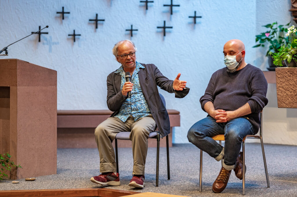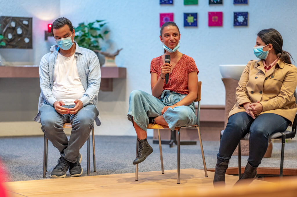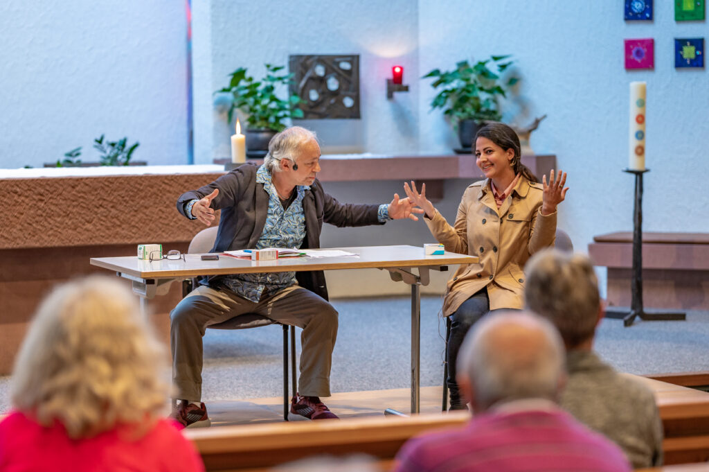 Ein Abend mit Szenen, Gespräch und Diskussion über Flucht und Integration musikalisch umrahmt.